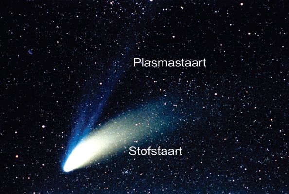 Het meest opvallende onderdeel van de komeet is zijn staart (vandaar ook de volkse naam "staartster"). Kometen hebben meestal twee staarten. De helderste, wit-gele staart bestaat uit neutraal gas en stof dat het zonlicht reflecteert. De zwakkere, blauwe staart is de plasmastaart, die bestaat uit ionen (elektronisch geladen moleculen). De plasmastaart is blauw omdat de koolstofmonoxide-ionen (CO ) onder invloed van het zonlicht zelf licht gaan uitstralen.